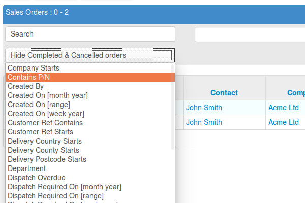 A large company wide database must provide simple and easy searching in order to extract most benefit from it. This is why Starjar has fast and flexible searching. Each list of primary business objects (Sales order, Purchase orders, Contact, etc.) has searches designed specifically for that list. Matching records are found almost instantly. For power users, advanced searching allows combinations of many search filters, which leads to on demand report generation.